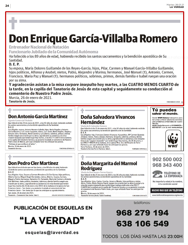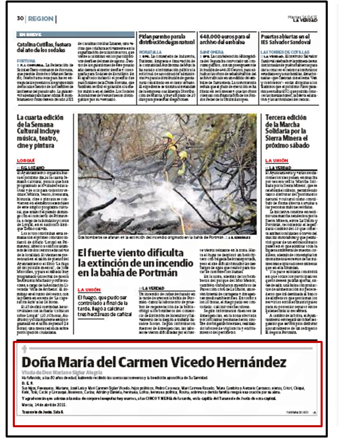 Publicar una esquela en el Diario La Verdad de Murcia: