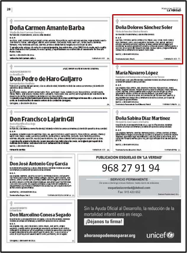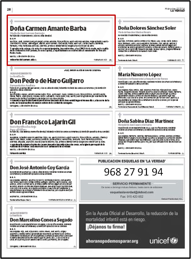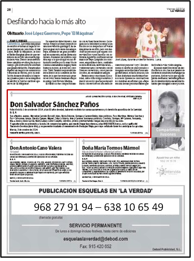 DETALLES MODELOS ESQUELAS DIARIO LA VERDAD DE MURCIA